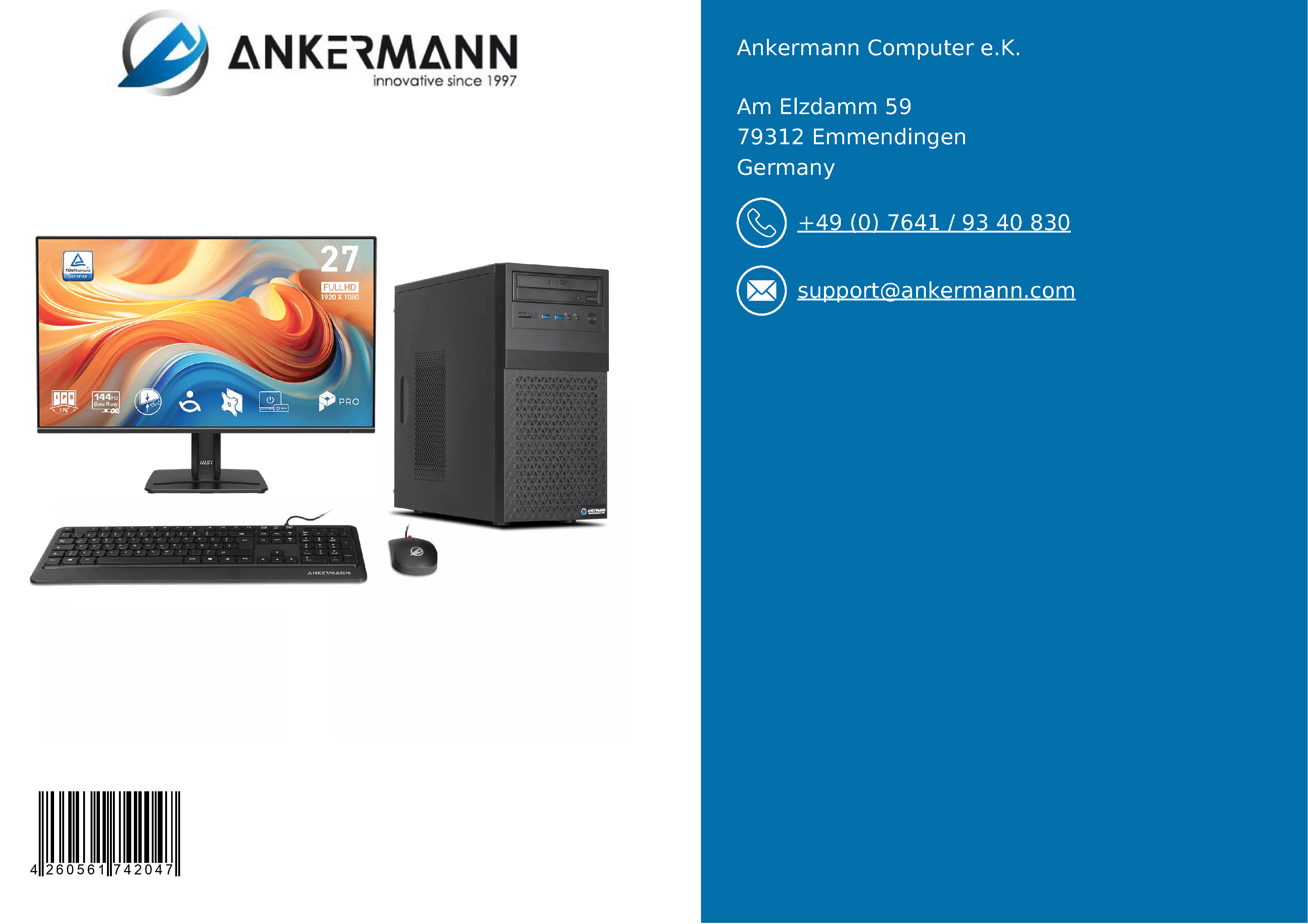 - Der Service von Ankermann bietet langjährige Erfahrung in der Herstellung und dem Vertrieb von PCs in Deutschland und 24 Monate Garantie. 6 Monate kostenloser Return-Service im Garantiefall und ein schneller und freundlicher Kundensupport sind inklusive.