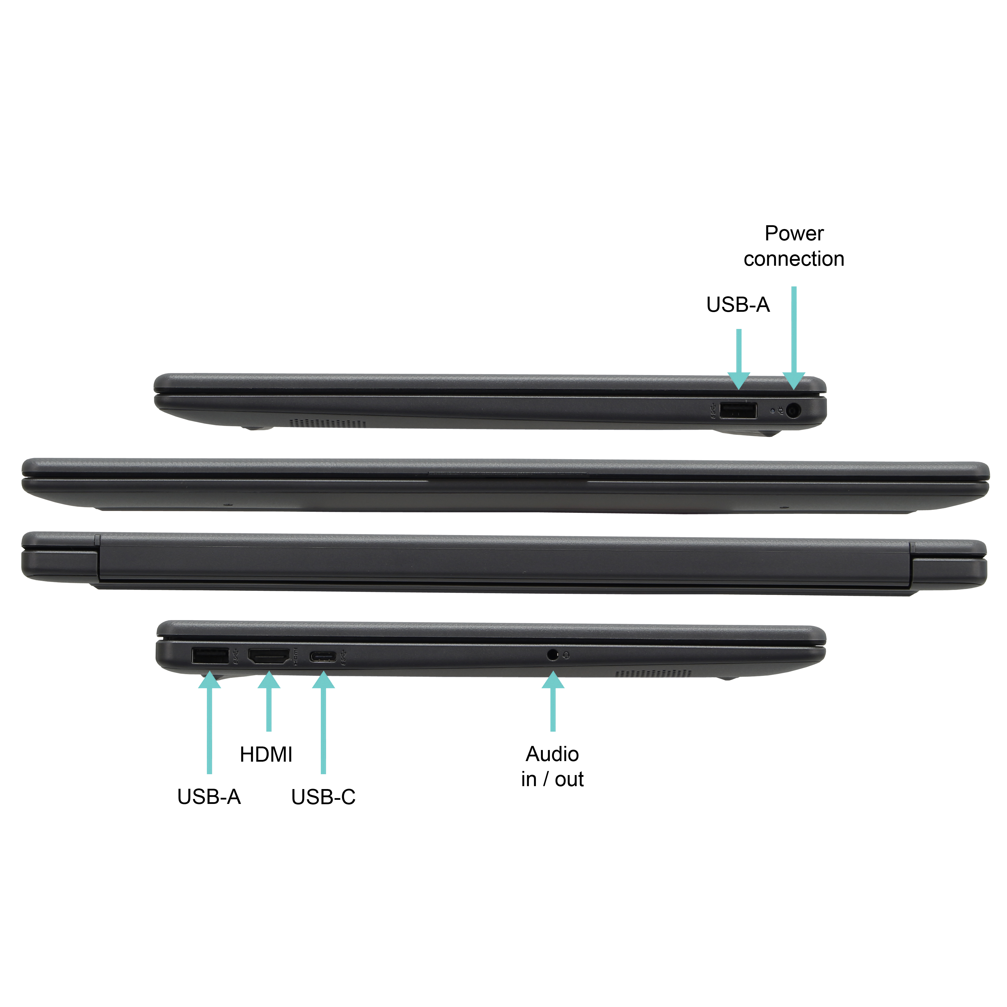 - Der Laptop ist mit einer schnellen 1TB M.2 NVMe SSD ausgestattet. Er verfügt über 2 x USB-A 3.0 Anschlüsse und 1 x USB-C 3.2 Anschluss und einen Audio Ausgang.