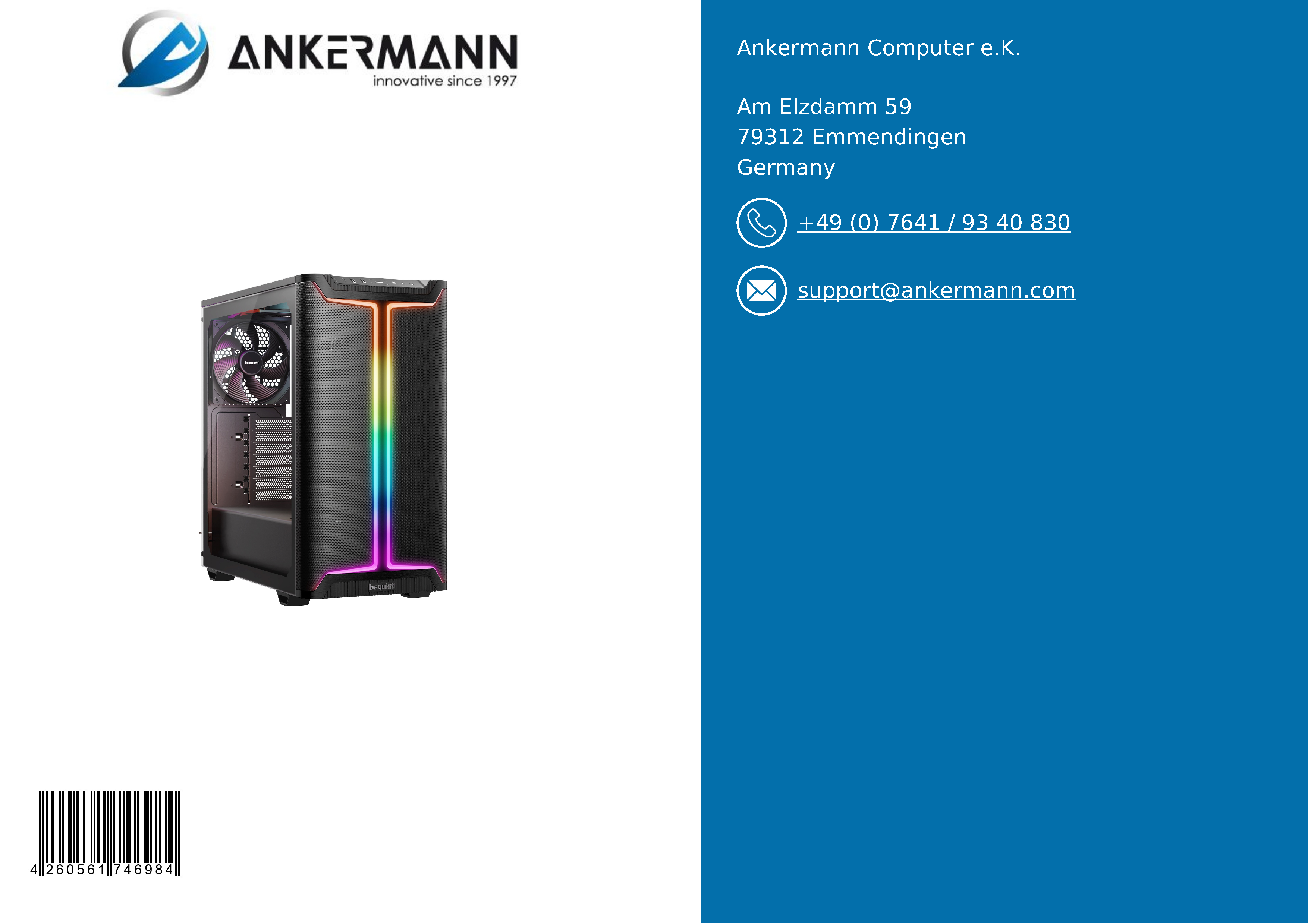 - Der Service von Ankermann bietet langjährige Erfahrung in der Herstellung und dem Vertrieb von PCs in Deutschland und 24 Monate Garantie. 6 Monate kostenloser Return-Service im Garantiefall und ein schneller und freundlicher Kundensupport sind inklusive.