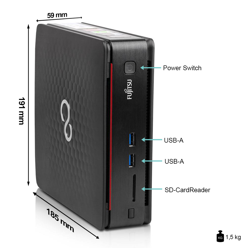 - Der Fujitsu Esprimo Q920 Linux Mini PC bietet starke Leistung auf kleinstem Raum. Ausgestattet mit einem Intel Core i5‑4590T Quad‑Core Prozessor 4× 2.5–3.1 GHz und schnellen 8 GB DDR4 RAM sorgt dieses kompakte System für zuverlässige Performance im Alltag.