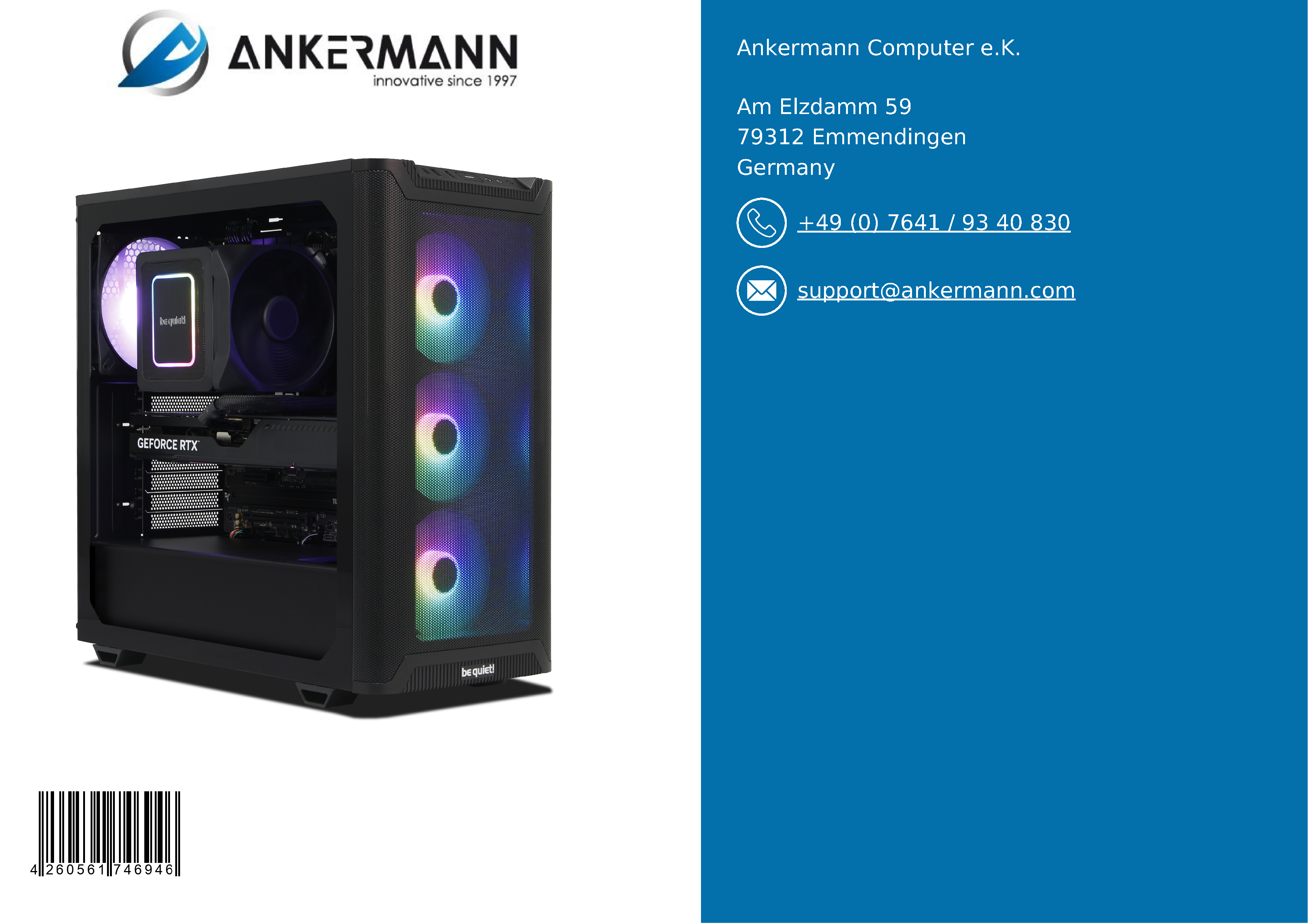 - Der Service von Ankermann bietet langjährige Erfahrung in der Herstellung und dem Vertrieb von PCs in Deutschland und 24 Monate Garantie. 6 Monate kostenloser Return-Service im Garantiefall und ein schneller und freundlicher Kundensupport sind inklusive.