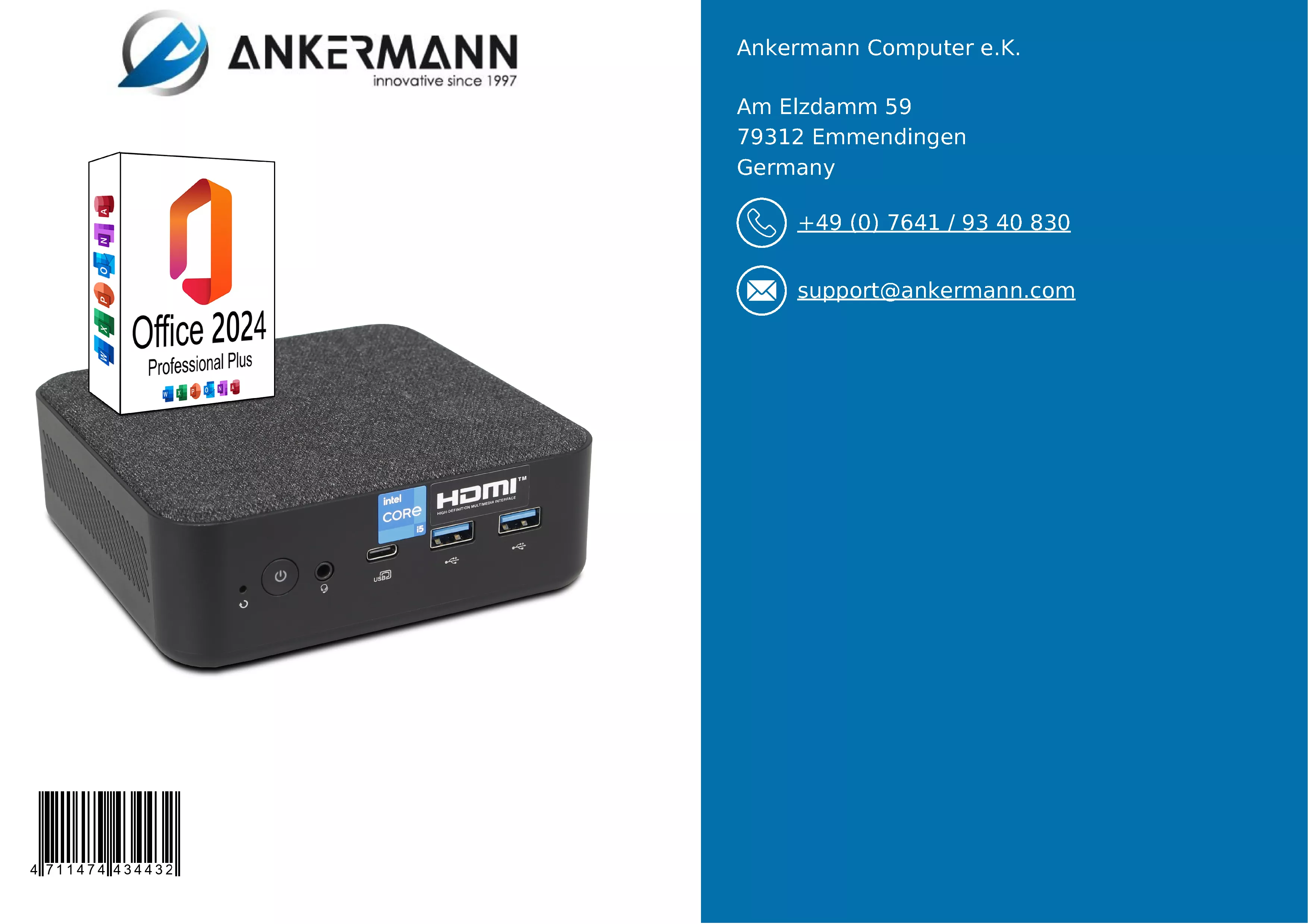 - Ankermann's service offers many years of experience in the manufacture and distribution of PCs in Germany and a 24-month warranty. 6 months of free return service in the event of a warranty claim and fast, friendly customer support are included