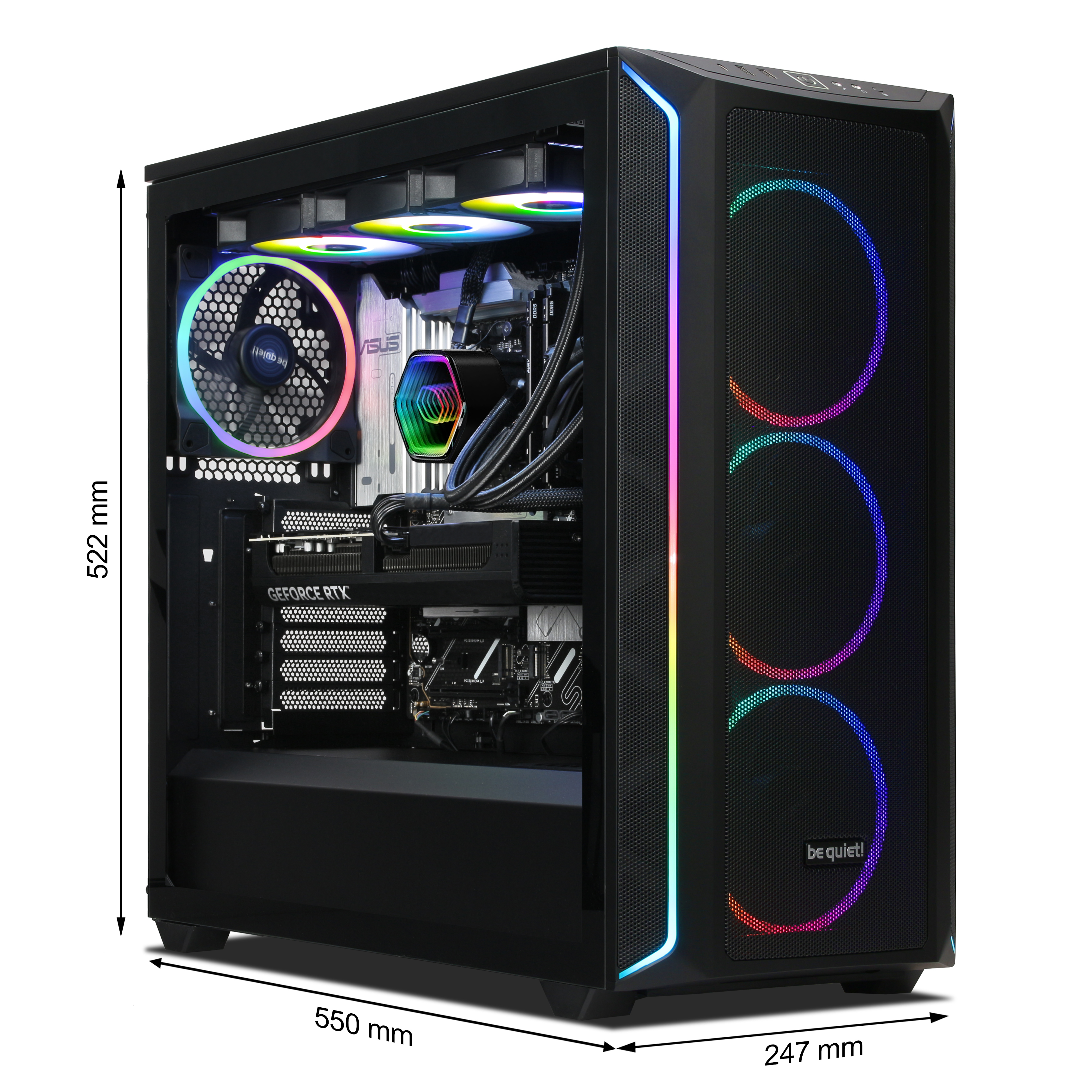 - The PC is housed in a be quiet! Shadow Base 800 FX case with RGB lighting and is powered by a 850W power supply. An WiFi & Bluetooth solution is ready and offers comprehensive connectivity.