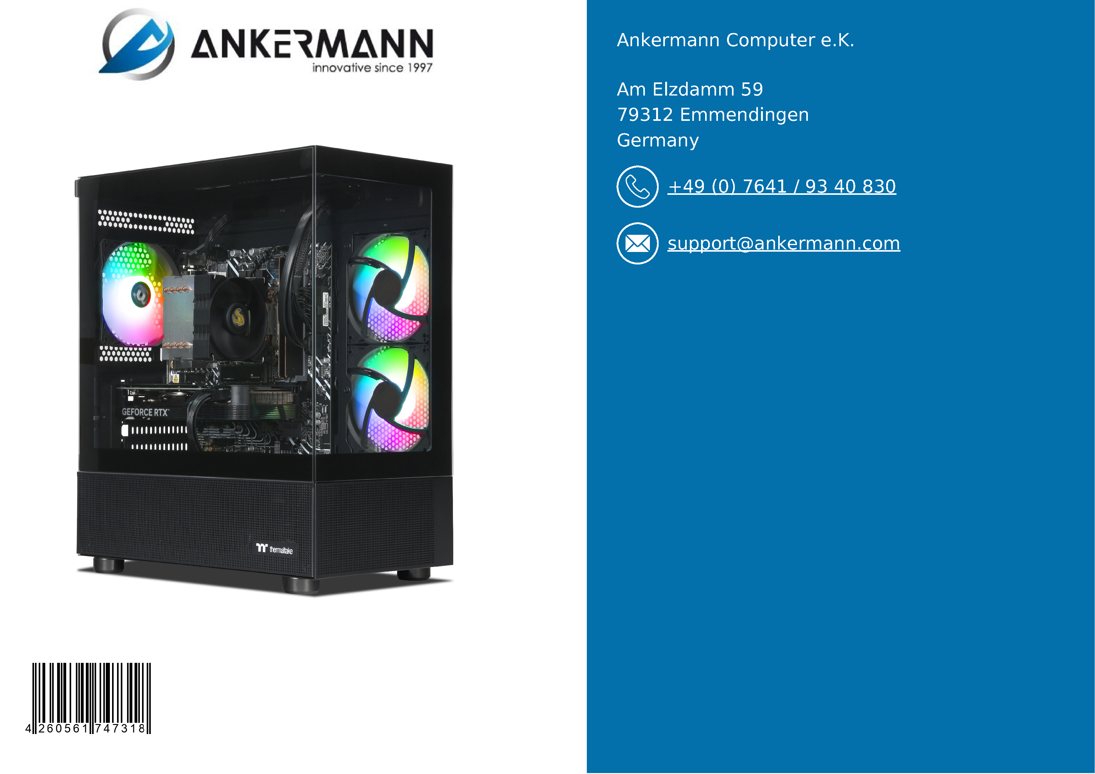 - Ankermann's service offers many years of experience in the manufacture and distribution of PCs in Germany and a 24-month warranty. 6 months of free return service in the event of a warranty claim and fast, friendly customer support are included