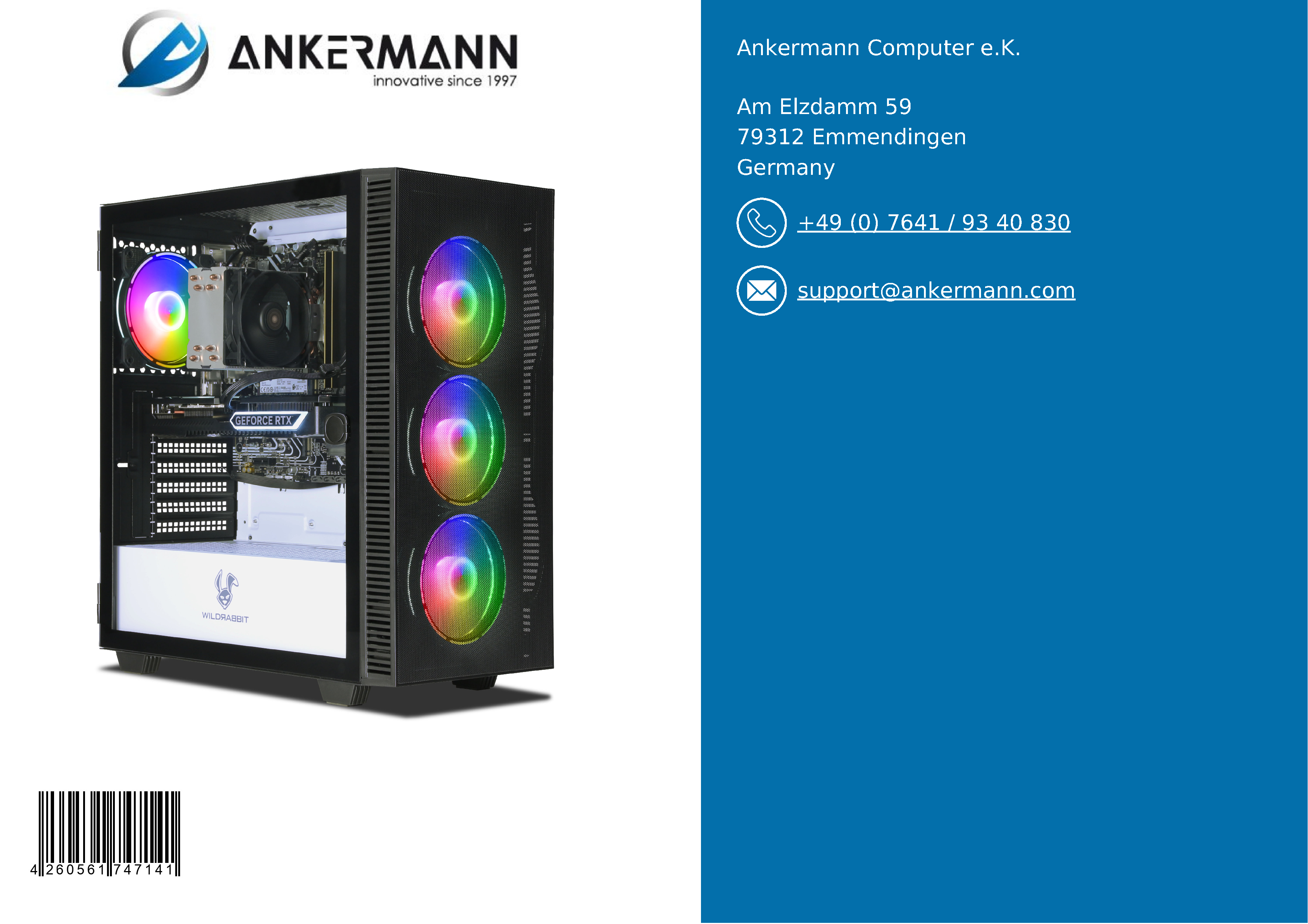 - Ankermann's service offers many years of experience in the manufacture and distribution of PCs in Germany and a 24-month warranty. 6 months of free return service in the event of a warranty claim and fast, friendly customer support are included