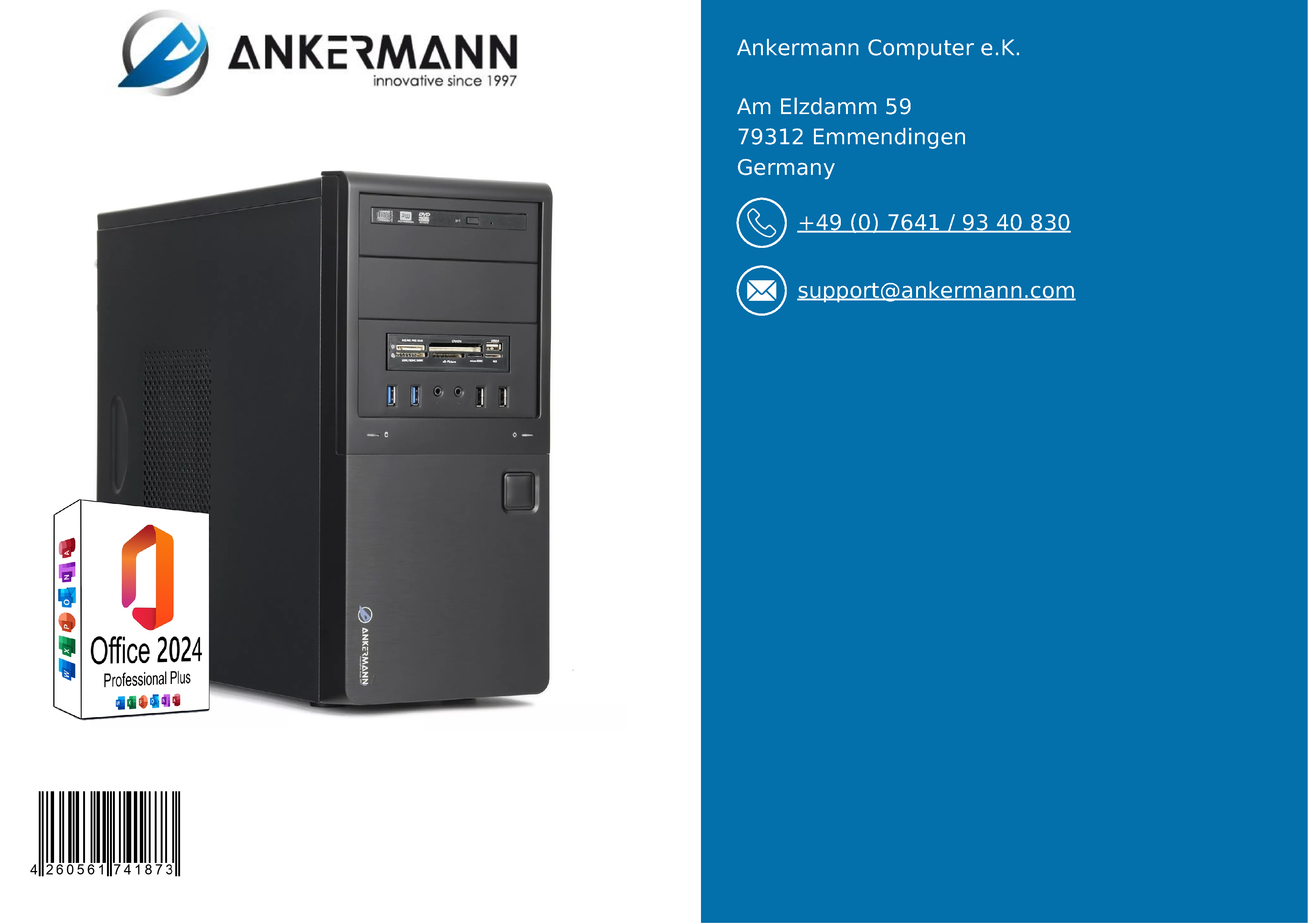 - Ankermann's service offers many years of experience in the manufacture and distribution of PCs in Germany and a 24-month warranty. 6 months of free return service in the event of a warranty claim and fast, friendly customer support are included
