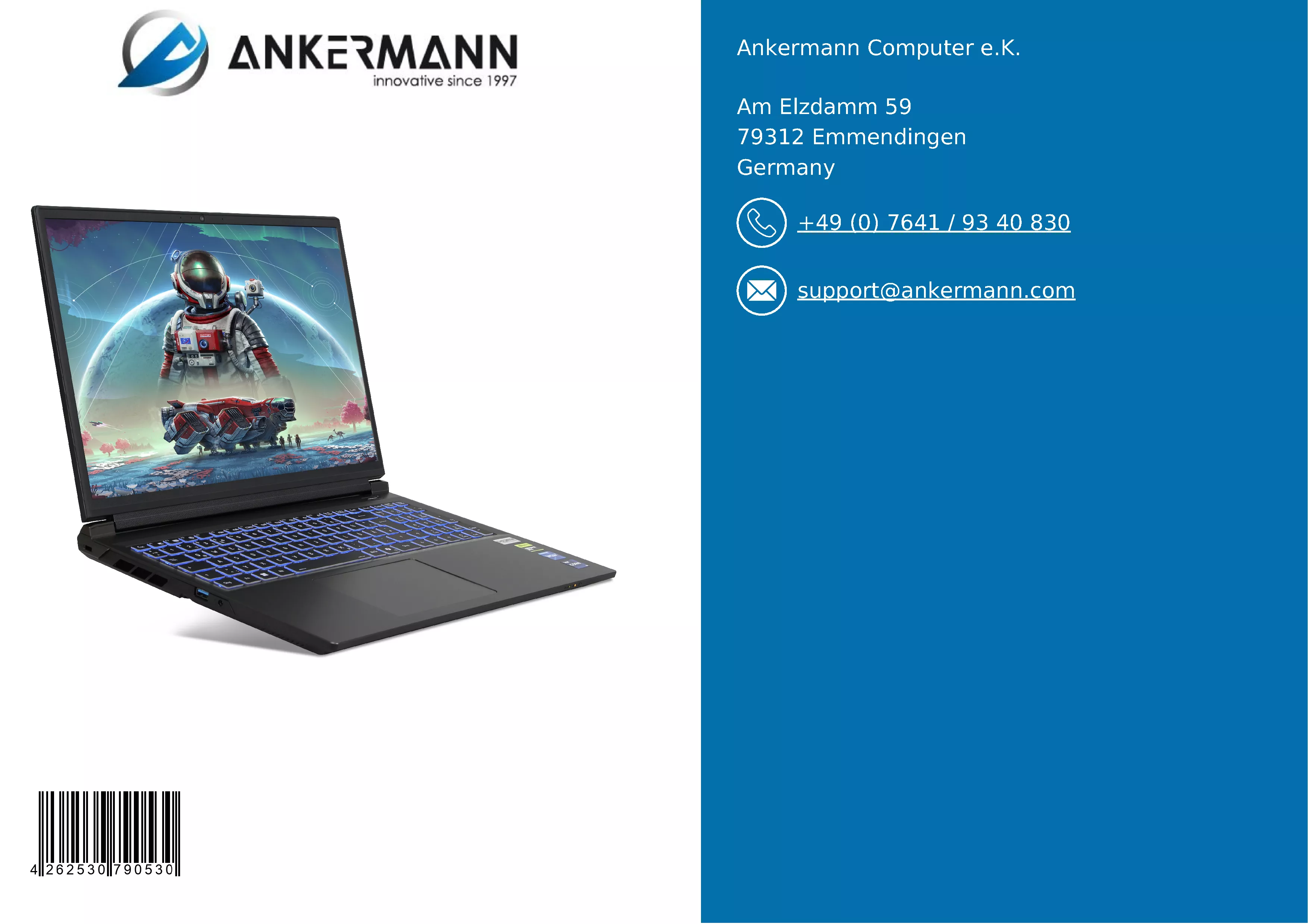 - El servicio de Ankermann le ofrece muchos años de experiencia en la fabricación, distribución y garantía de calidad de PC en Alemania y una garantía de 24 meses sobre nuestro hardware. Un servicio de devolución de 6 meses en caso de reclamación de garantía y un servicio de atención al cliente rápido y amable son cosa natural para nosotros.