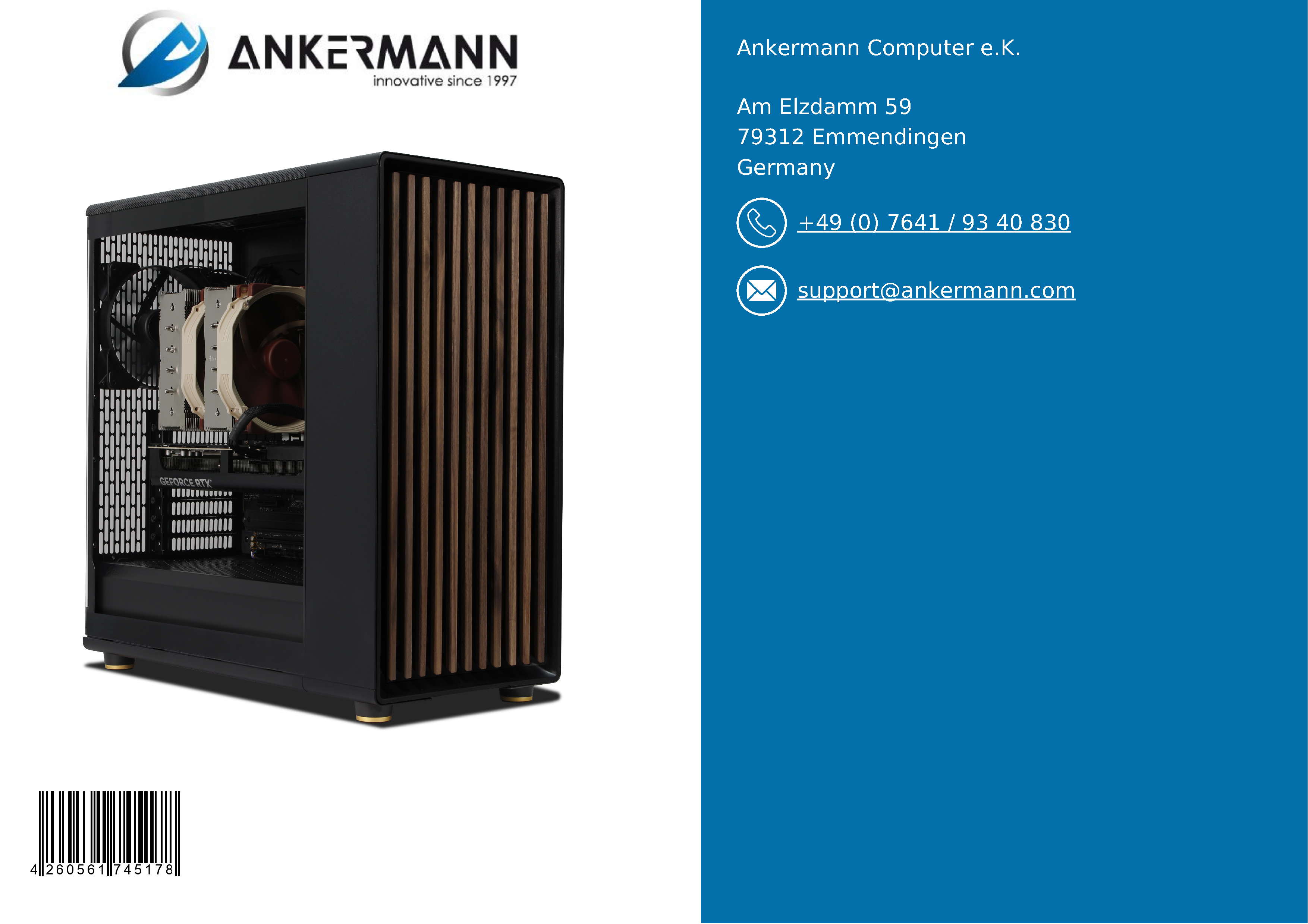 - El servicio de Ankermann le ofrece una garantía de 24 meses y muchos años de experiencia en la fabricación y venta de PC en Alemania y Europa. Un servicio de devolución en caso de reclamación de garantía y una atención al cliente rápida y amable son algo natural para nosotros.