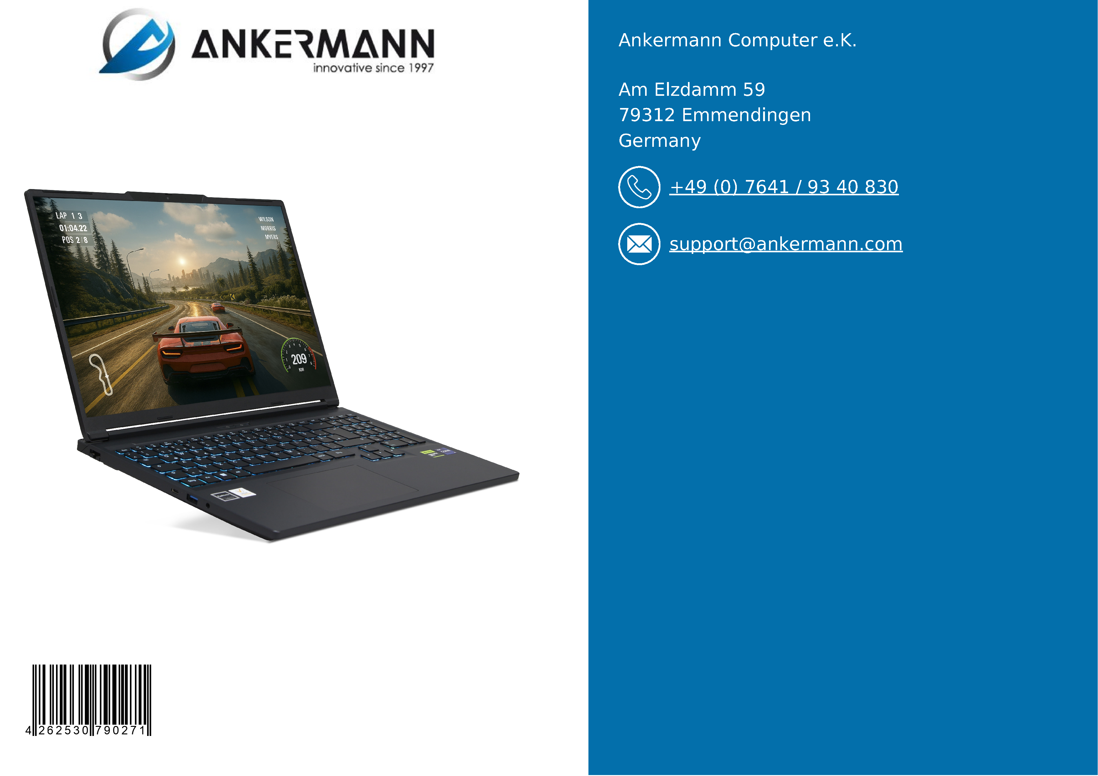 - Le service d'Ankermann vous offre une longue expérience dans la fabrication, la distribution et l'assurance qualité des PC en Allemagne et une garantie de 24 mois sur notre matériel. Un service de retour de 6 mois en cas de garantie et un support client rapide et convivial sont naturellement à notre disposition.