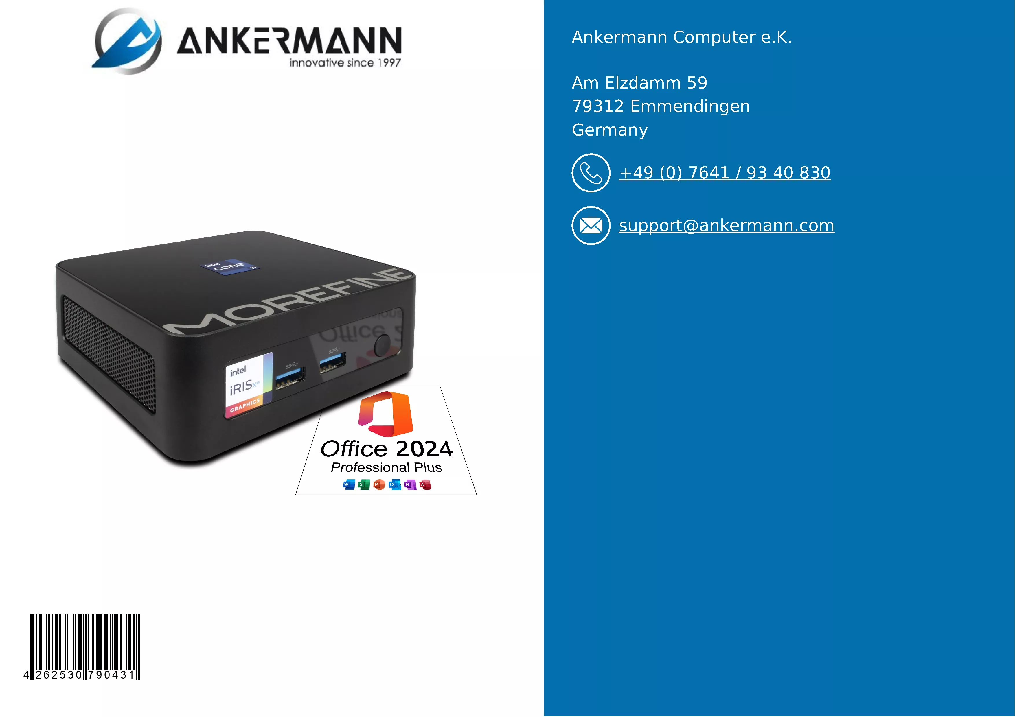 - Le service d'Ankermann vous offre une garantie de 24 mois et une longue expérience dans la fabrication et la distribution de PC en Allemagne et en Europe. Un service de retour en cas de garantie et un support client rapide et aimable sont naturellement à votre disposition.