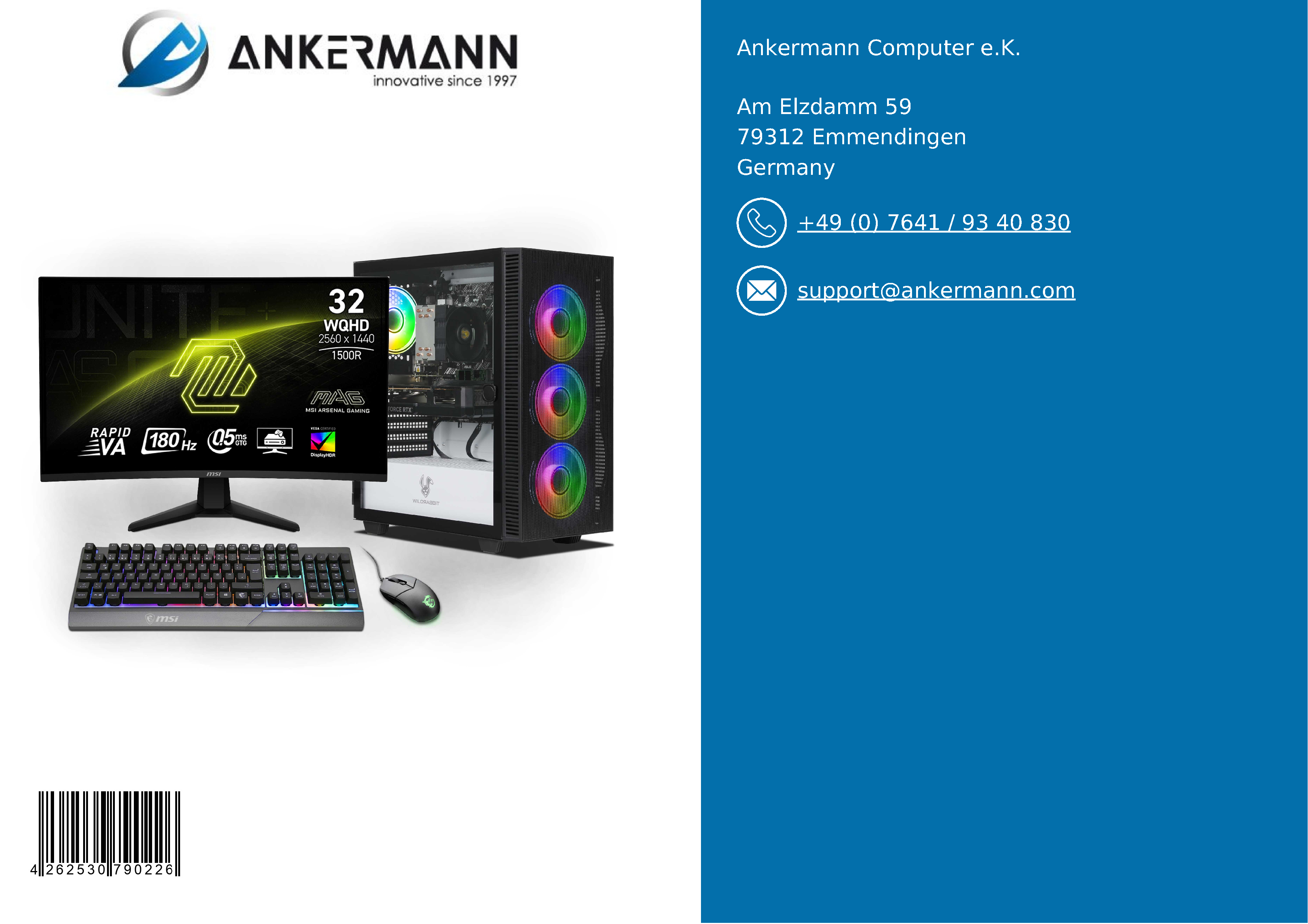 - Il servizio di Ankermann offre una lunga esperienza nella produzione e nella vendita di PC in Germania e una garanzia di 24 mesi. Sono inclusi 6 mesi di servizio di reso gratuito in caso di garanzia e un supporto clienti rapido e amichevole.