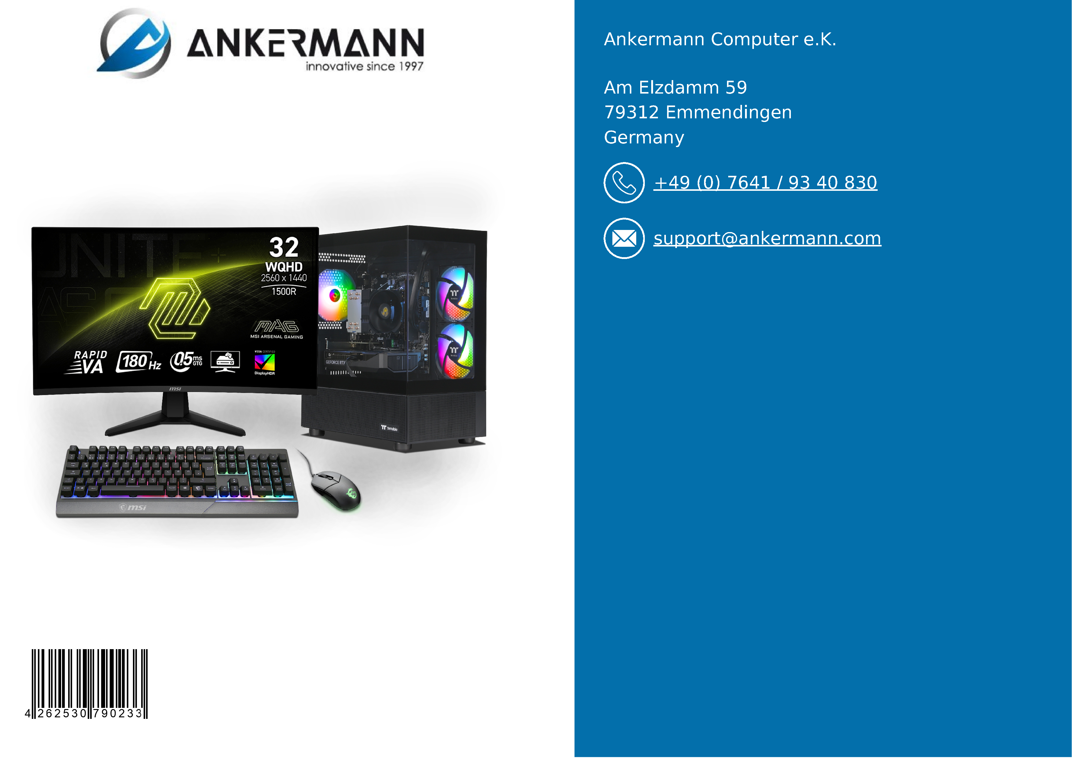 - Il servizio di Ankermann offre una lunga esperienza nella produzione e nella vendita di PC in Germania e una garanzia di 24 mesi. Sono inclusi 6 mesi di servizio di reso gratuito in caso di garanzia e un supporto clienti rapido e amichevole.