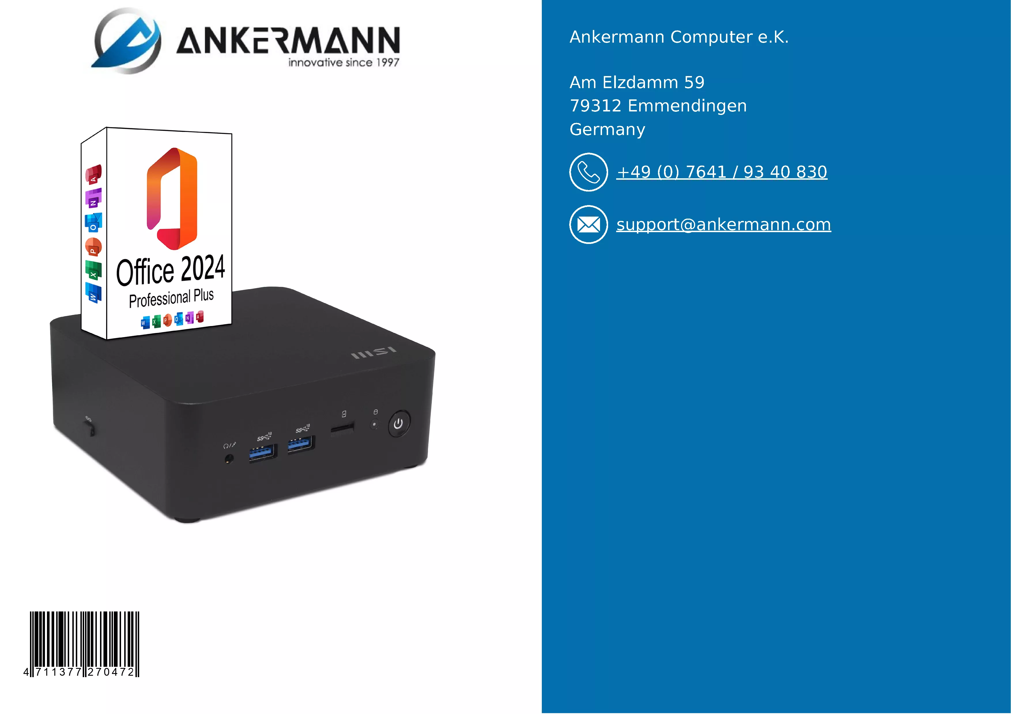 - Il servizio di Ankermann offre una lunga esperienza nella produzione e nella vendita di PC in Germania e una garanzia di 24 mesi. Sono inclusi 6 mesi di servizio di reso gratuito in caso di garanzia e un supporto clienti rapido e amichevole.