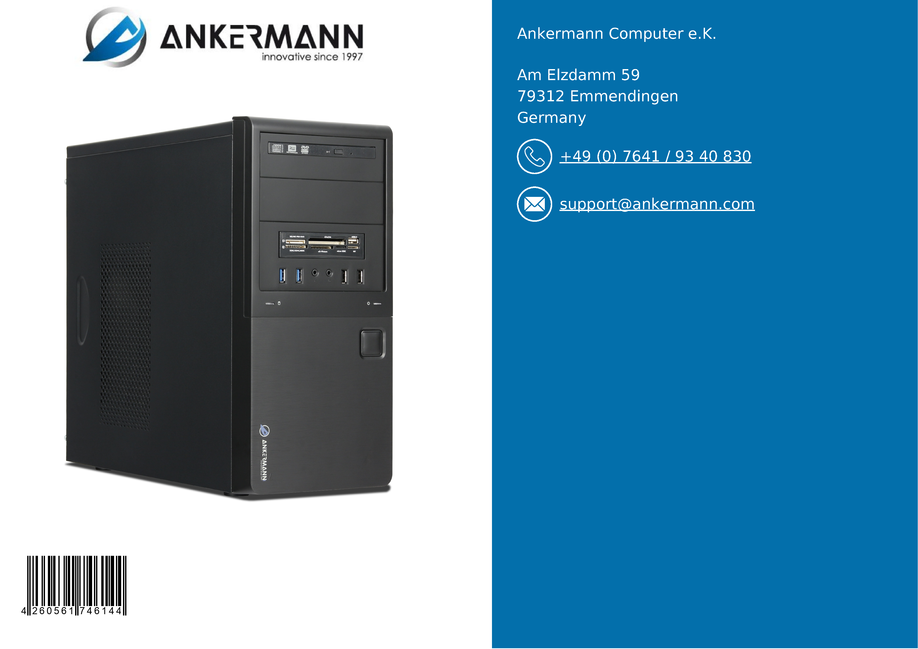 - Il servizio di Ankermann offre una lunga esperienza nella produzione e nella vendita di PC in Germania e una garanzia di 24 mesi. Sono inclusi 6 mesi di servizio di reso gratuito in caso di garanzia e un supporto clienti rapido e amichevole.